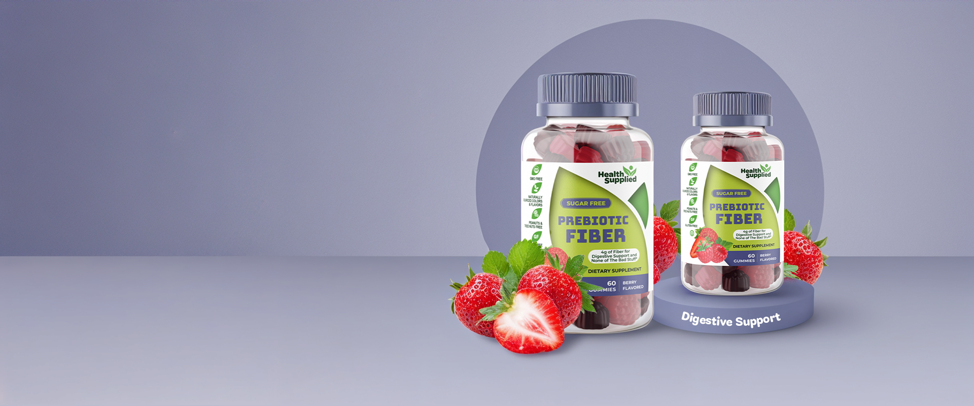 These Sugar Free Prebiotic Fiber gummies have a fruity berry flavor everyone loves; they are enjoyable and easy to chew and swallow.